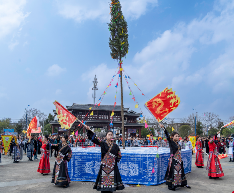 当天,作为苗族跳花节的重要环节,苗族栽花树祈福仪式,沿袭千年古俗,历经35分钟庄重流程的表演,既承载着苗家儿女“敬天地、祈安康”的赤诚祈愿,更映照出各民族守望相助、多元一体的深厚温情。