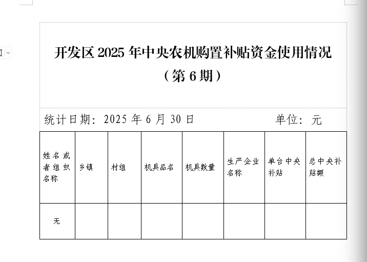 开发区2025年中央农机购置补贴资金使用情况(第6期)